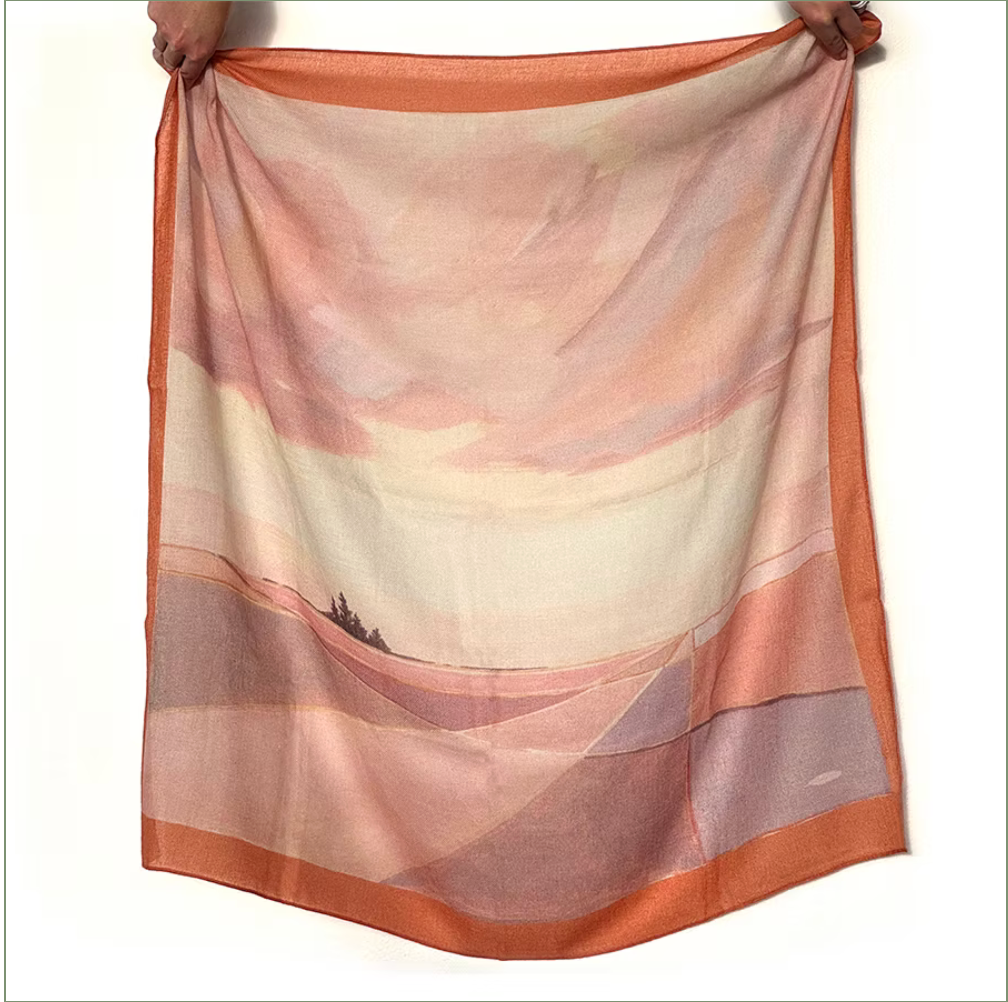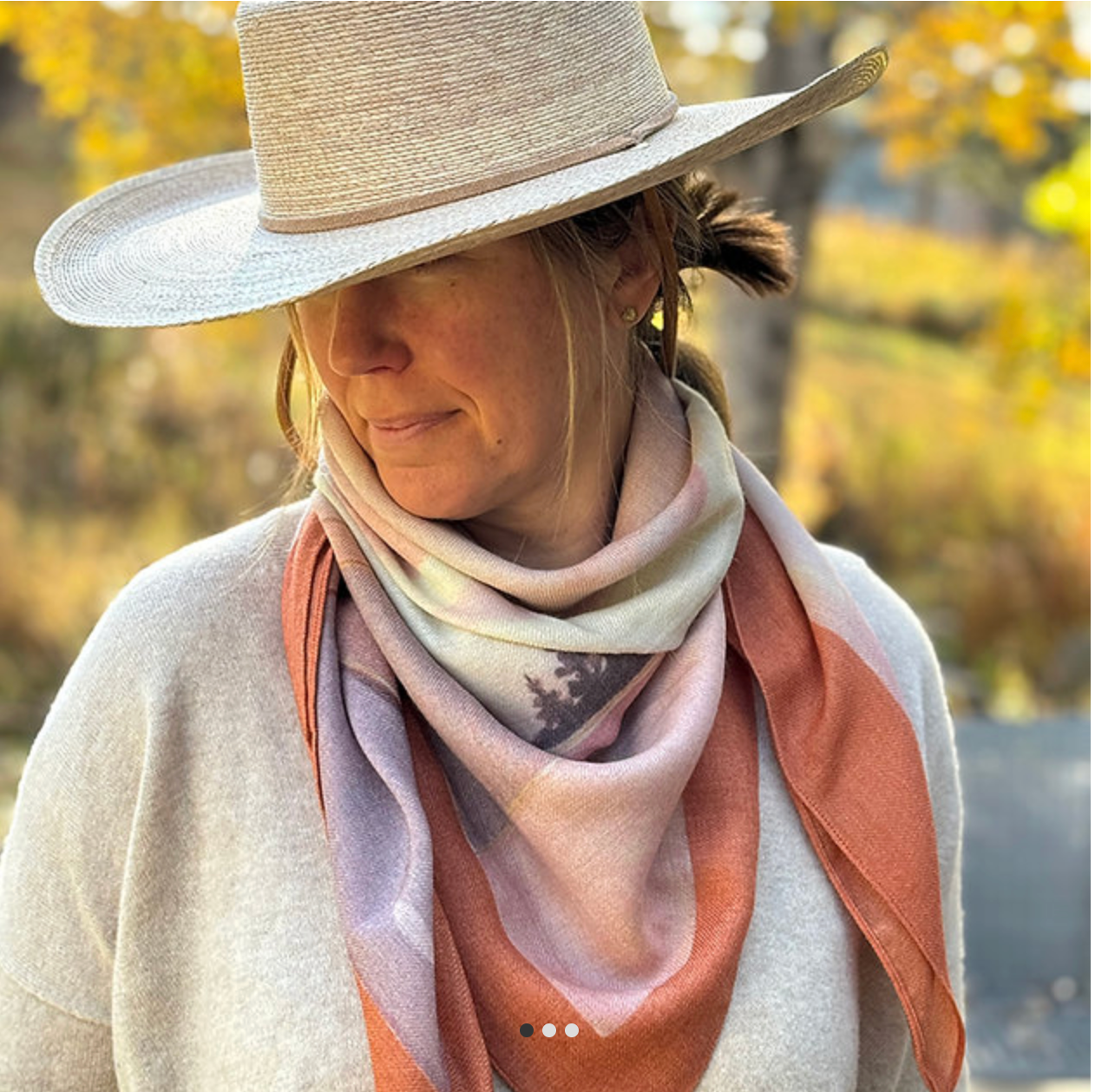 Stay warm in this gorgeous artistically printed wool and silk blend hand scarf.